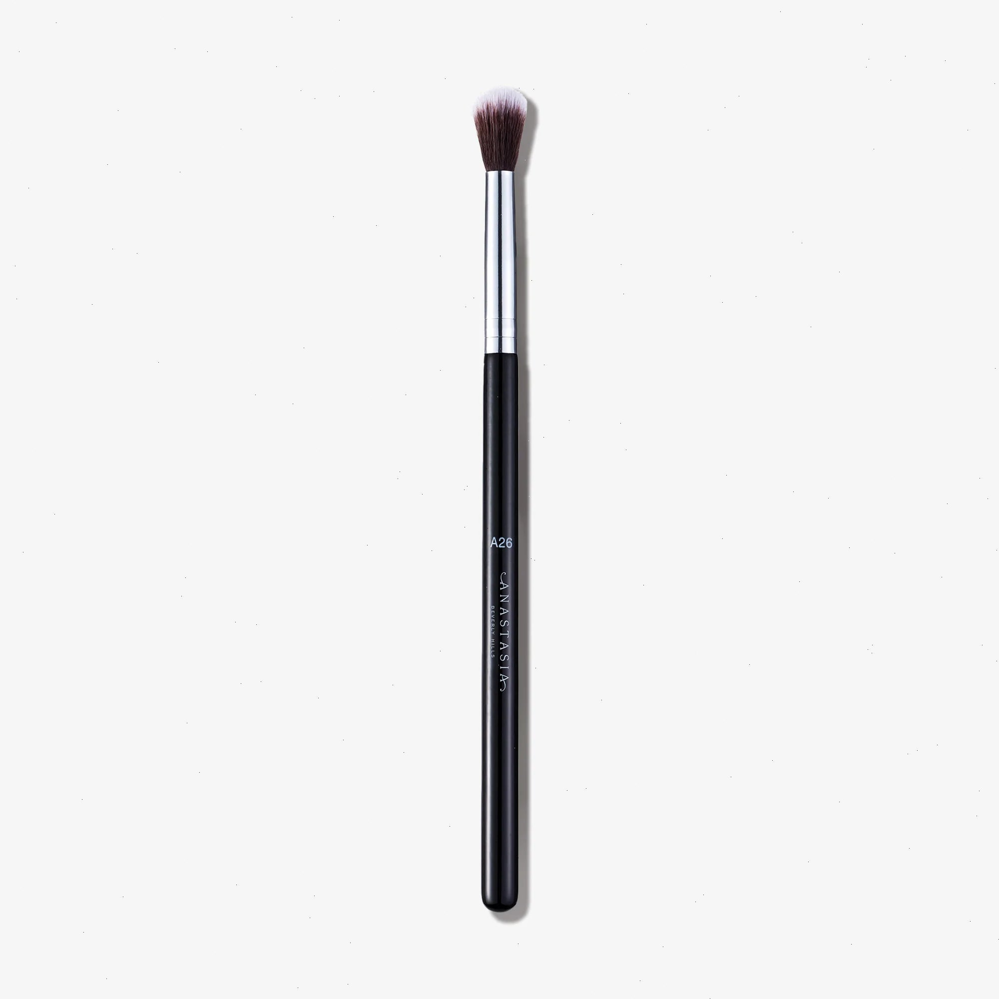 Anastasia Beverly Hills A26 Pro Brush - Crease Blending Brush is a small, round fluffy crease brush with synthetic fibers, ideal for seamlessly blending powder and emollient-based products on the eyes and face. The small, rounded shape of this pro artist face face makeup brush fits perfectly onto the high points of the face and under-eye area, making it ideal for precise placement of highlighter makeup and concealer.
