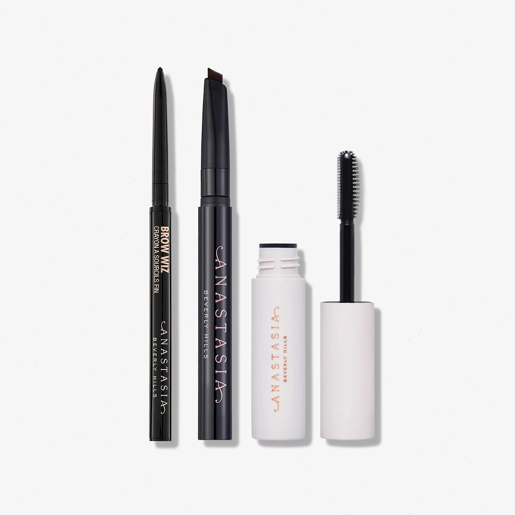 The ultimate trio for fuller-looking brows, featuring Deluxe Mini Brow Wiz®, Deluxe Mini Brow Definer, and Deluxe Mini Brow Freeze® Gel. Outline, shade, and fill with Brow Definer’s triangular-tipped design. Brow Wiz® offers pro precision, detail and payoff with a formula that mimics hair. Lock brows in place all day with Brow Freeze® Gel.