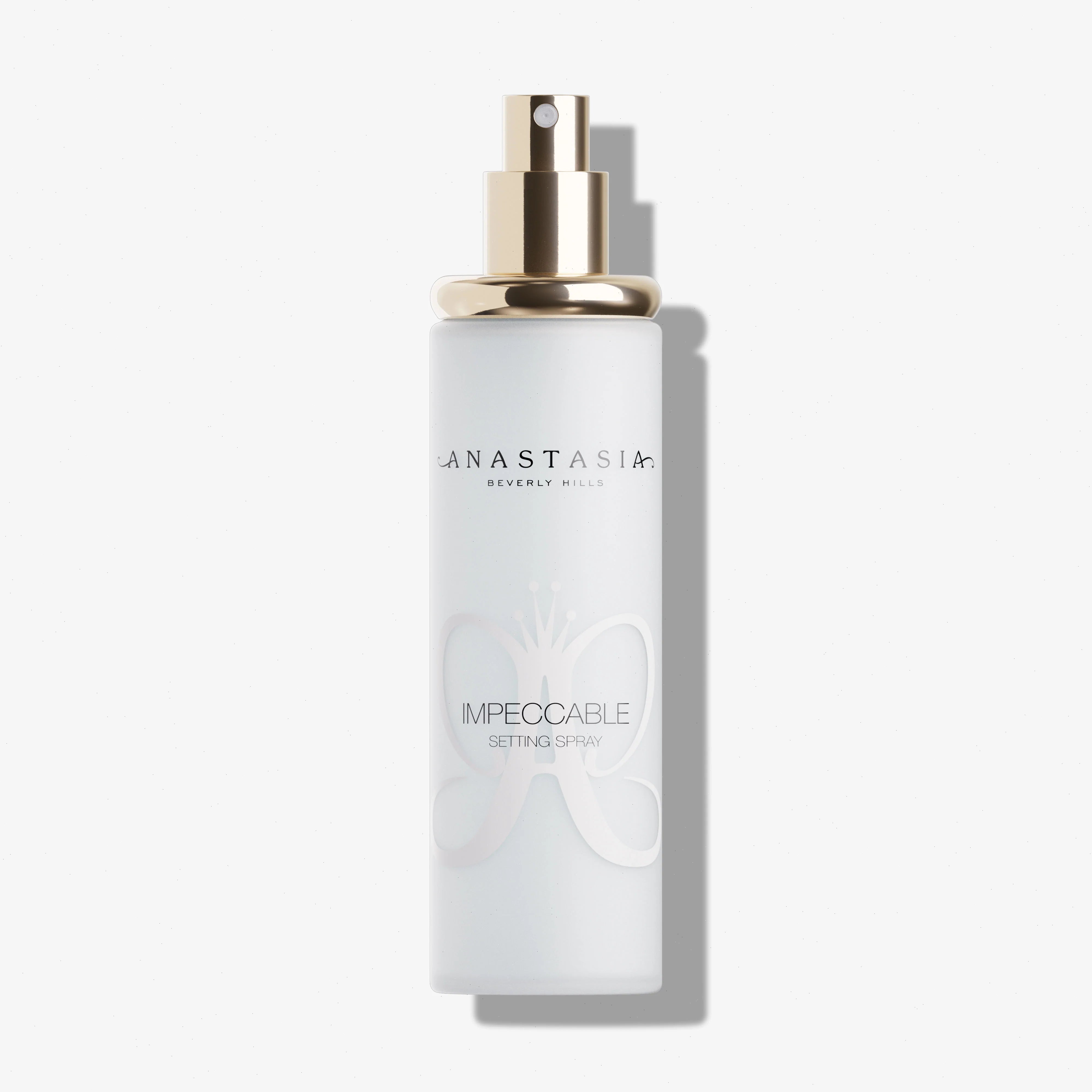 Introducing Impeccable Setting Spray: Lock in velvety-matte, smooth makeup for 24 hours and achieve a seamless, natural, shine-free finish all day. This hydrating, blurring formula reduces the appearance of pores, fine lines and wrinkles while keeping makeup in place.